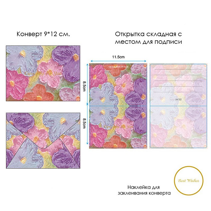 Размер конверта вместе с открыткой 9*12 см.