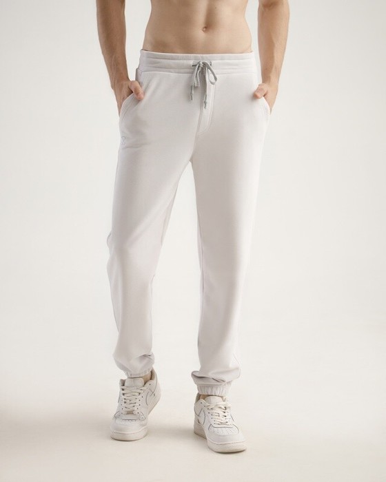 Мужские брюки, джоггеры с резинкой по низу брюк. Пояс из 2-х деталей, внутри резинка. По поясу отстрочка, петли,шнур. Боковые карманы с двойной отстрочкой, боковые швы отстрочены. Задний карман на правой задней половинке брюк.