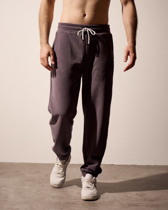 Мужские брюки, джоггеры с резинкой по низу брюк. Пояс из 2-х деталей, внутри резинка. По поясу отстрочка, петли,шнур. Боковые карманы с двойной отстрочкой, боковые швы отстрочены. Задний карман на правой задней половинке брюк.
