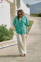 Свободные брюки с кокеткой, два кармана на передних половинах брюк, без манжет