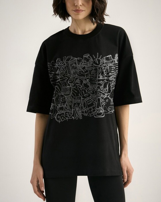 Футболка свободного силуэта. Горловина из рибаны.