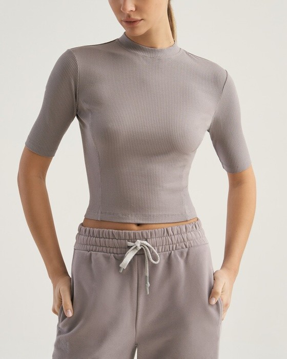 Укороченная футболка, облегающего силуэта. Притачная стойка.