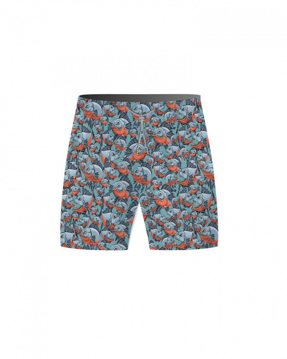 Плавательные шорты. Карманы в боковых швах. Задний карман с клапаном на правой задней половинке шорт. Пояс цельнокроенный, отстроченный, внутри с резинкой и шнурком.