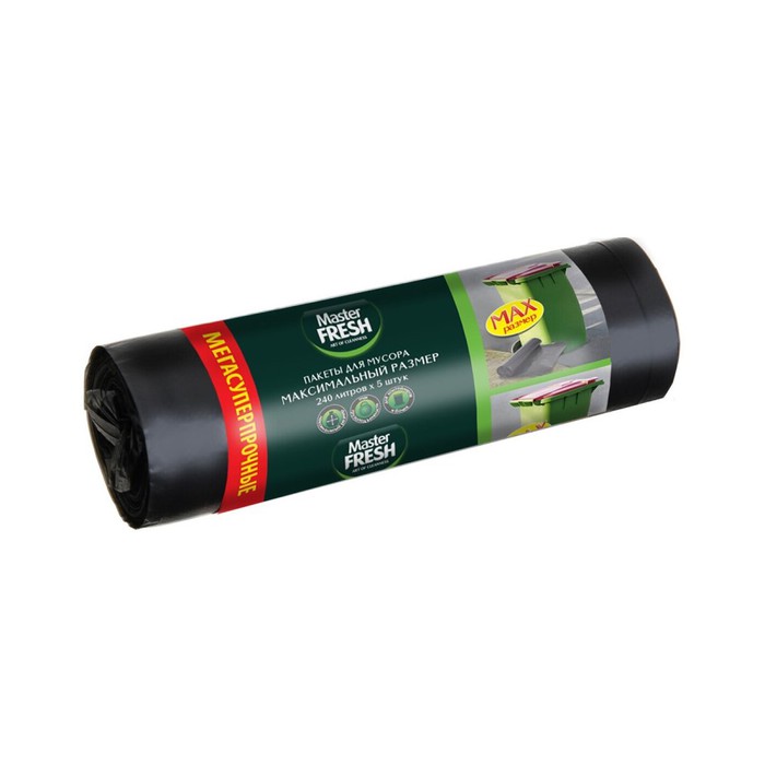 Пакеты для мусора Master FRESH суперпрочные большого литража обладают высокой прочностью. При отрыве пакет легко отделяется от рулона и равномерно распределяет груз мусора. Пакеты отлично защищают от грязи и неприятного запаха, препятствуют проникновению насекомых. Идеально подходят для: больших бачков, генеральной уборки, дачных работ, субботников, пикников на природе.