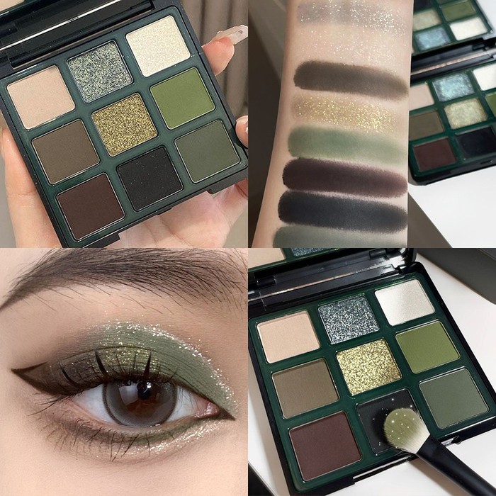 Палетка теней с зелеными оттенками 9 цветов TINGPHE