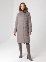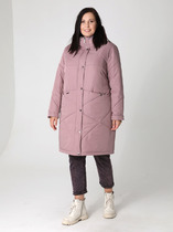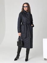 Женственное и элегантное утепленное пальто из комбинированной ткани. Полуприлегающий силуэт создан рельефами из горловины на передней части и спинке. Центральная застежка на молнию, закрытую планкой с кнопками. Карманы в рельефном шве на потайных молниях. Воротник-стойка. Рукав втачной двухшовный, длина 64 см, низ рукава можно загибать, регулируя длину. Длина изделия по спинке 85 см. Утеплитель холкон (см.описание), плотность 200, в рукавах 150.