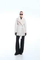 В наступающем сезоне лидирующие позиции занимает стеганое пальто. Отличительной особенностью стеганых моделей пальто является простроченный материал в виде небольших квадратов или ромбов. Мы предлагаем пальто легкого прилегающего силуэта с поясом из мерцающих тканей. Центральная застежка на потайные кнопки, воротник-стойка. Модель дополнена элегантной брошью. Утеплитель синтепух-синтетический пух. Температурный режим до-5-10.