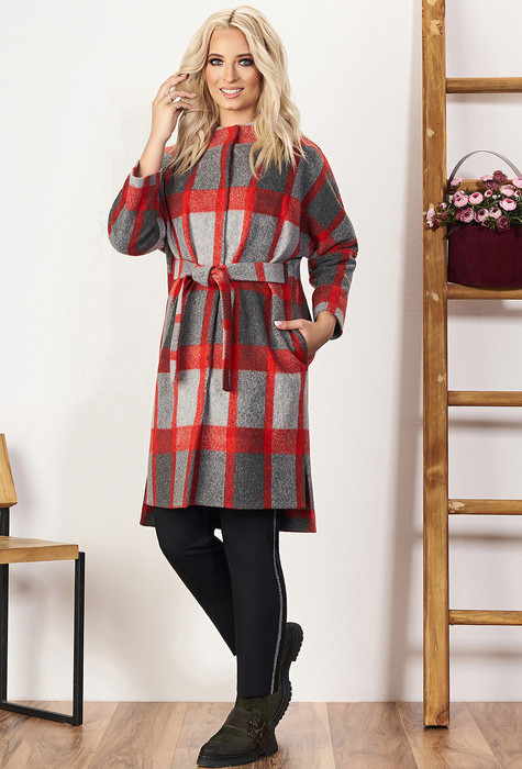 ПАЛЬТО BAZALINI 3555 КРАСНО-СЕРЫЙ