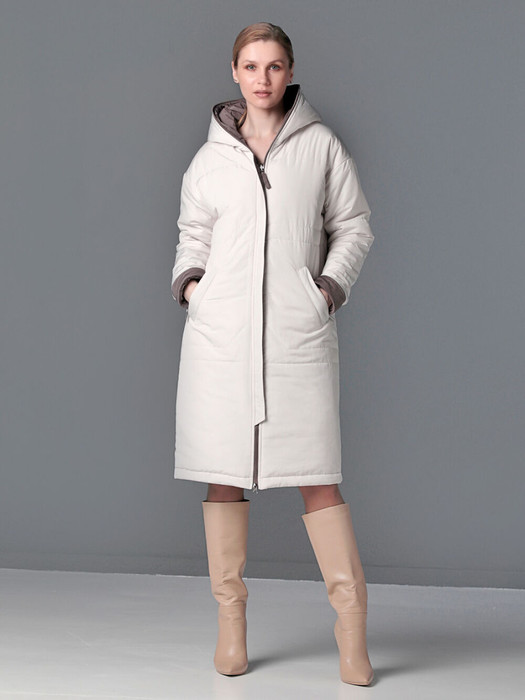 Демисезонное двухстороннее пальто прямого силуэта с  легким заужением книзу. Застежка на двухзамковую молнию  позволяет расстегнуть пальто как сверху, так и снизу, регулируя тем самым ширину шага по необходимости. Прилегание стильного капюшона можно менять посредством застежки.  Прорезные карманы с одной стороны - с молнией, с другой - вход расположен в шве.  Длина рукава актуального рубашечного кроя корректируется отворотом. Модель такого утепленного плаща подходит для девушек и женщин разной возрастной категории, он хорошо садится на любую фигуру. Плащевая ткань, из которой выполнено пальто, имеет водоотталкивающую пропитку, выдерживающую небольшой  дождь, снег и ветер. Хорошо зарекомендовавший себя утеплитель "Холлофайбер", плотностью 250 гр/м, защитит от холода.  Рекомендации по температурному режиму представлены в характеристиках, но следует учитывать индивидуальные особенности. Выбирайте понравившееся сочетание цветов, меняйте аксессуары и обувь, и это пальто станет любимой вещью в Вашем гардеробе!