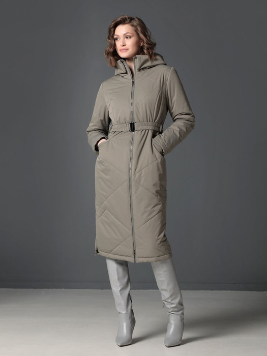 Длинное демисезонное пальто полуприлегающего силуэта с втачными рукавами и разрезами по бокам. Застежка на двухзамковую молнию позволяет расстегнуть пальто как сверху, так и снизу, что актуально при такой длине изделия для корректировки ширины шага и при подъеме по лестнице. Воротник - стойка, переходящая в капюшон. Прорезные карманы с декоративными лИсточками удобно расположены в рельефных швах. При желании линию талии можно акцентировать съемным эластичным поясом на защелке. Плащевая ткань имеет водоотталкивающую пропитку, которая выдержит небольшой осенний дождь или снег. Хорошо зарекомендовавший себя утеплитель Холлофайбер, плотностью 150 гр/м, защитит от холода и ветра. Подкладка в изделии выполнена из качественной ткани точно в цвет верха. Фантазируйте с аксессуарами, и Ваша осень будет стильной и комфортной!
