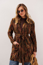 Пальто женское демисезонное, двубортное, прямого силуэта длиной ниже колена, на подкладке. Застежка двубортная на 2 пары рабочих пуговицы и петли. По переду карман с листочкой. По спинке в нижней части среднего шва отлетная шлица. Рукав длинный, комбинированный, с ластовицей. Воротник и лацкана отложные. По воротнику, лацканам, бортам, листочкам отделочная строчка - имитация ручного стежка.