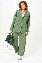 Пальто женское демисезонное, прямого силуэта, двубортное, ниже колен, на подкладке. На переде карман-листочка с втачными концами, застежка на 2 пуговицы. Воротник и лацкана отложные. Рукава длинные, двухшовные, в нижней части локтевого шва шлица на 4 непрорезные петли и пуговицы.