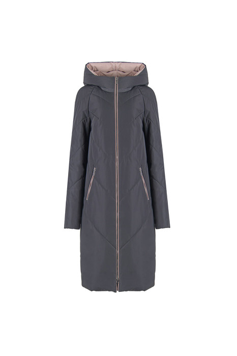 Пальто женское плащевое утепленное, стеганное на утеплителе ISOSOFT 250гр. прямого силуэта, на подкладке, с капюшоном, длиной ниже колена. Застежка на молнию. Перед с наклонными карманами, застегивающиеся на молнию. По борту и карману отделочный кант. Рукав втачной, двухшовный.