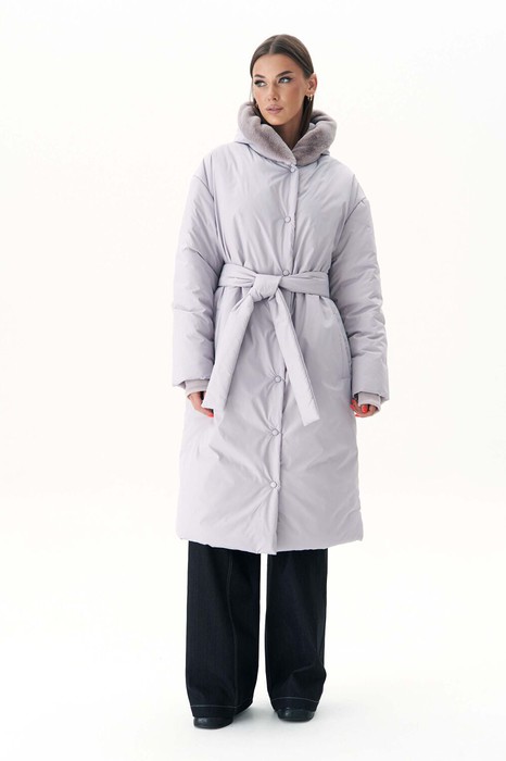 "Элегантное, женственное и эффектное. Это пальто было популярно и в прошлые сезоны, но в коллекции 24-25 г. занимает одно из первых мест. Современный, свободный силуэтс заниженной линией плеча, втачной рукав, расширенный в области оката, центральная застёжка на тесьму молнию и цельнокроённую с полочкой планку, растёгивающуюся на отдельные кнопки, воротник-капюшонс отделкой мехом.