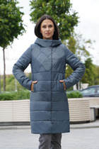 Пальто летучая мышь женское с капюшоном зимнее голубого цвета 9618Gl
