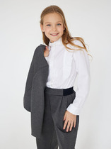 Школьная блузка для девочки свободного кроя. Блузка детская с классическим отложным воротничком. Удобная центральная застёжка на кнопки, имитирующие пуговицы — ребёнок легко и быстро застегнёт и расстегнёт. Фишка модели — глубокие складки, заложенные в верхней части переда. — стильная деталь, выгодно отличающая эту модель от банальных однотонных блузок. В составе ткани преобладает качественный хлопок — блузка в школу для девочки мягкая, воздухопроницаемая и комфортная для ребёнка. Полиэстер помогает не терять форму и отличный внешний вид — изделие прослужит не один сезон. Школьная блузка лаконичного дизайна, без принта, её легко сочетать с различными брюками, юбками, сарафанами. Красивая и практичная блузка белая для девочки — подходит как для повседневной носки, так и для более торжественных случаев. Помните о правильном уходе за изделием: рекомендуется стирать при температуре не выше 30 °C, без предварительного замачивания, с изнанки. Это поможет сохранить качество и цвет блузки на долгое время.