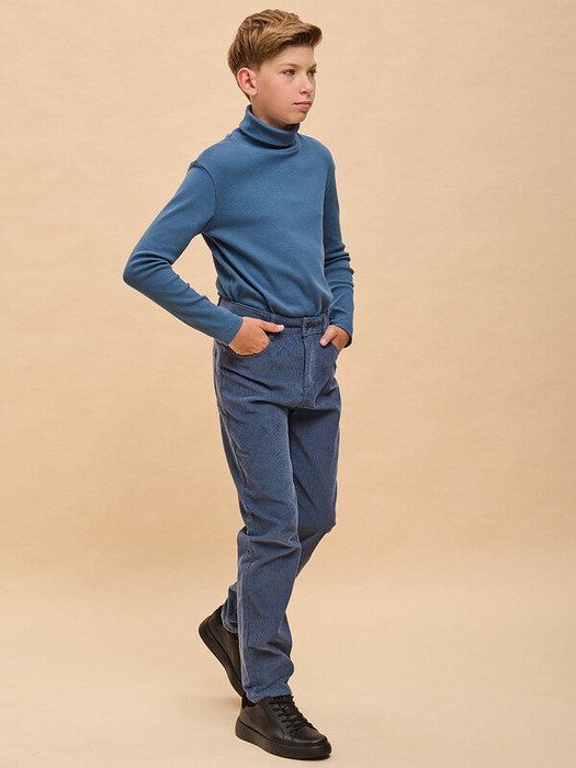 Вельветовые брюки с высокой посадкой для мальчика. Стильная современная модель – идеально сидит, отлично носится, всегда аккуратно выглядит. 100% хлопок в составе – ткань мягкая, дышащая, приятная на ощупь, прочная и простая в уходе. Застежка на гульфик и металлическую пуговицу. Внутренняя регулировка объема по талии широким эластиком и пуговицей – брюки не спадают, комфортно носить без ремня. Удобные карманы по бокам и сзади для важных мелочей. Снизу можно сделать манжеты и отворачивать их по мере роста ребенка. Модель отлично комбинируется с футболкой, водолазкой, лонгсливом – одинаково хорошо с заправленной одеждой и навыпуск. Подходит для создания стильного повседневного образа.