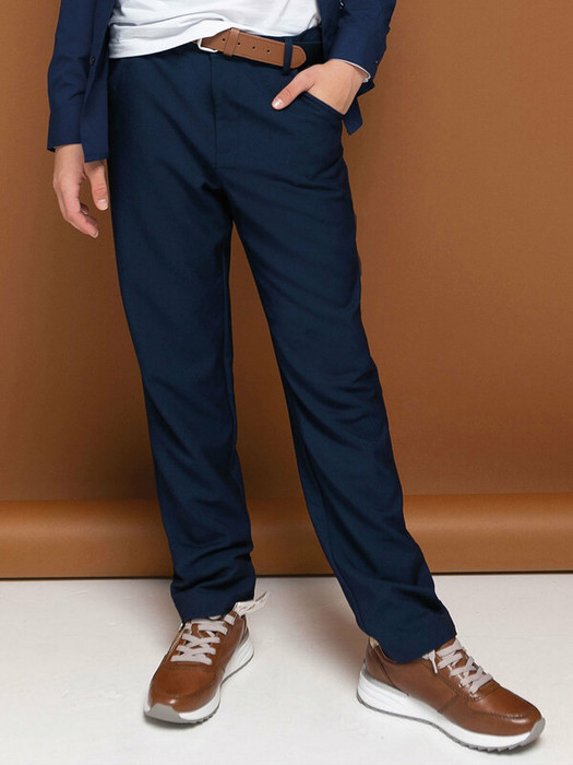 Брюки из костюмной ткани в джинсовом стиле для мальчика. С виду – классика, но удобно, как в джинсах! В них ребёнок легко пройдет дресс-код в школе и будет круто смотреться на любой тусовке, в гостях и прогулке. Ткань легкая и прочная, почти не мнется. Брюки комфортно носить, за ними легко ухаживать. Объем по линии талии регулируется внутренним эластиком на пуговицах. Застежка на гульфик. Едва заметные боковые карманы для хранения важных мелочей. Изюминка модели – форма и обработка карманов сзади. Идеальны для создания делового школьного образа на каждый день и торжественных случаев. Отлично комбинируются с рубашкой, водолазкой, свитшотом, пиджаком.