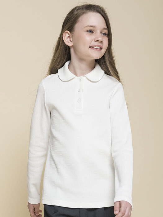 Трикотажный джемпер прилегающего силуэта для девочки. Приятный на ощупь, с большим содержанием хлопка в составе, гигроскопичный и простой в уходе вафельный трикотаж. В джемпере комфортно в течение всего дня, ничего не давит, не колет, не сковывает движения. Модель с аккуратным отложным воротничком со скруглёнными концами застёгивается по центру на три пуговицы — ребёнку удобно надевать и снимать джемпер через голову. Пуговицы тон в тон с матовым покрытием софт-тач — тактильно приятные и добавляют модели элегантности. Лаконичный дизайн лонгслива позволяет сочетать его с различными моделями школьной формы: юбками, брюками, сарафанами. Модный и практичный вариант одежды для школы.