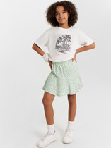 Классическая модель школьной футболки для девочки. Прямой силуэт и свободный рукав делают её удобной для любой фигуры и не ограничивают движения.