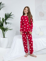 Красивая и уютная пижама супертрендового сиреневого цвета для девочки. В составе ткани 100% хлопка — идеально для детской одежды! Модель приятна на ощупь, прекрасно пропускает воздух, позволяя коже ребёнка дышать. При этом в пижаме из хлопка ребёнку будет комфортно, даже если он сбросит одеяло во сне. Всё это обеспечивает комфортный и качественный сон. Джемпер и брюки среднего объёма, плечо немного спущено, рукава широкие и свободные — в пижаме очень удобно спать, играть. Широкая и мягкая резинка в поясе не перекручивается и не давит. Манжеты и отделка горловины из эластичной рибаны — они не растягиваются, ребёнку удобно надевать и снимать пижаму. Брюки украшает принт в виде милых зверят, а джемпер декорирован принтом в виде дракончика-единорога — ни одна девочка не останется равнодушной! Перевод: "Счастливое маленькое сердечко". Комплект подходит для сна как дома, так и в детском саду — прекрасный выбор для вашего ребёнка! Станет замечательным подарком, который способен вызвать искреннюю радо
