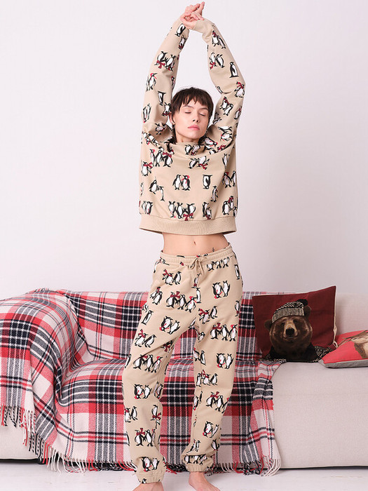 Помните о правильном уходе за изделием: рекомендуется стирать при температуре не выше 30 °C, без предварительного замачивания, с изнанки. Это поможет сохранить качество и цвет пижамы на длительное время.