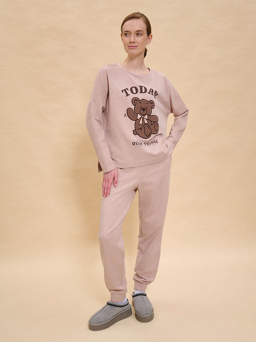 Теплая пижама женская. В составе ткани (футер с начёсом) преобладает высококачественный хлопок — комплект для сна мягкий, гипоаллергенный и хорошо пропускает воздух. В хлопковой пижаме вам будет тепло и уютно во время сна. Эластан помогает модели надолго сохранить первоначальную форму. Джемпер и брюки умеренного объёма, плечо джемпера спущено, спинка чуть длиннее переда— в пижаме очень удобно спать. В поясе брюк мягкая и широкая резинка — не перекручивается и не давит. Отделка горловины из эластичной рибаны — она не растягивается, пижаму удобно надевать и снимать. Хлопковая пижама украшена милым, «няшным» принтом в виде плюшевого медвежонка, надпись переводится: «сегодня я не буду переживать из-за того, что не могу контролировать» — просто позвольте себе побыть счастливым ребёнком. Пижамный костюм неприхотлив в уходе. Принт эластичный и мягкий, хорошо переносит частые стирки. Пижама женская с брюками подходит как для сна, так и просто для отдыха дома. Помните о правильном уходе за изделием: рекомендуется стирать при температуре не выше 30 °C, без предварительного замачивания, с изнанки. Это поможет сохранить качество и цвет пижамы на длительное время.