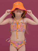 Раздельный купальник для девочек. Топ и трусы купальника декорированы яркими разноцветными пайпингами, что придает изделию солнечное летнее настроение. Перед топа и трусов на подкладе - не просвечивает. Завязка топа широкой лентой позволяет регулировать его по росту девочки. Мягкая эластичная ткань разработана специально для купальных костюмов и идеально садится по фигуре.  Быстро сохнет и практически нет выгорания на солнце.