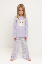 Детская пижама – комплект бренда Pelican, состоящий из лонгслива и брюк. Комфортный сон очень важен для роста и восстановления организма ребенка, поэтому пижама ребенку должна обеспечивать максимальный комфорт и защиту. Пижама для девочки создана из натурального хлопка, сохраняет тепло, гигроскопична, впитывает влагу. Материал позволяет коже ребенка дышать, мягкая резинка брюк не стягивает. Изделие после стирки не садится, не растягивается, не линяет. Джемпер с круглым вырезом горловины, спущенным рукавом. Брюки прямые, на резинке. Ровные мягкие швы, отделка по горловине и манжеты на рукавах и низу брюк придают пижаме для детей лаконичный образ, модное исполнение и нарядность. Широкая размерная сетка позволяет подобрать оптимальный размер как для малыша, так и подростка. Эта пижама из трикотажа уютная и удобная. Она обязательно понравится ребенку и подарит хорошее настроение дочке или близкому человеку. Нейтральный цвет, который использован в данной модели подойдет и в качестве изделия пижама для мальчика. Цвет комплекта детской пижамы для девочки – однотонный голубой - свитшот с принтом по мотивам уютной зимы и надписью «The moment. Hot chocolate for good mood» (Момент. Горячий шоколад для хорошего настроения), брюки пижамы – в тон и составляют удачный образ. Модель из зимней коллекции сочетается с носками с рисунком голубого цвета. Преподнести подарок ребенку на любой праздник – Новый год, Рождество, день рождения или без повода – приятно и легко. Оригинально можно составить образы с пижамой для девочки со штанами - для детской, семейной фотосессии, если подобрать модели из коллекции Пеликан и порадовать тем самым себя и своих близких.