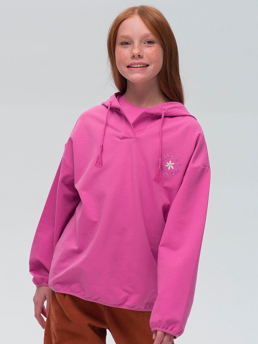 Худи оверсайз из футера для девочки. Натуральный хлопок и 5% эластана в составе – тело дышит, ткань меньше мнется и дольше сохраняет аккуратный внешний вид. Широкие рукава, сильно спущенное плечо и свободный крой – настоящий трендовый оверсайз. Теплый и удобный капюшон – объем регулируется плетеным шнуром с декоративными кисточками. Тонкая эластичная обработка низа рукава и изделия – держит форму, мягко облегает, комфортно носится. Цветная вышивка спереди для позитивного настроения. Худи составляет гармоничный дуэт с джоггерами или велосипедками. Идеально для активного детства – на каждый день, для учебы и занятия спортом.