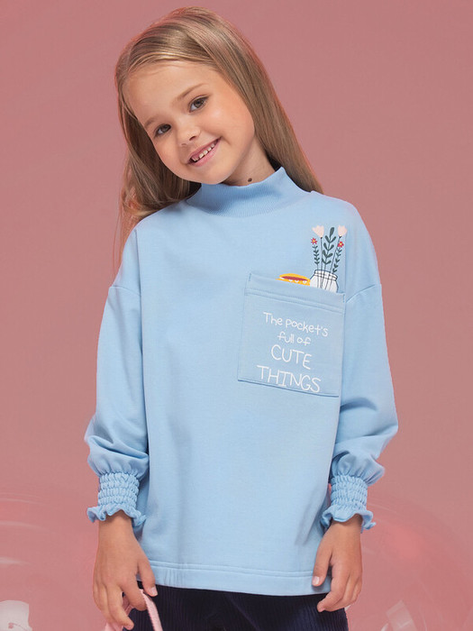 Детский свитшот для девочки из футера с начесом. Джемпер актуального свободного кроя со спущенным плечом подарит ребёнку комфорт и не будет стеснять его движений. Оверсайз-свитшот дополнен воротником-стойкой, который обеспечивает дополнительную защиту шеи от холода и ветра. Воротник выполнен из эластичной рибаны (ткань в рубчик) — он хорошо тянется, ребёнку удобно надевать и снимать свитшот, при этом воротник прекрасно сохраняет форму. Низ рукавов собран на тонкую резинку в несколько рядов, что придаёт модели элегантности и женственности. Слева на груди накладной карман для мелочей. За толстовкой легко ухаживать. В составе ткани преобладает высококачественный хлопок — свитшот приятен на ощупь и безупречно пропускает воздух, давая коже ребёнка дышать. Благодаря эластану изделие сохраняет отличную форму в течение долгого времени. Свитшот с принтом по переду (принт на кармане + «выглядывает» из кармана). Милый принт с уютным настроением изображает чашку с какао и вазу с цветами, надпись переводится: «карман, полный милых штук». Принты мягкие и эластичные — великолепно переносят частые стирки. Джемпер выполнен в красивом голубом цвете, его легко сочетать с любыми брюками, легинсами, джинсами. В линейке представлены следующие размеры: 2 (92); 3 (98); 4 (104); 5 (110); 6 (116); 7 (122); 8 (128); 9 (134); 10 (140); 11 (146). Свитшот с начёсом подходит девочкам дошкольного возраста, младшим школьницам и девочкам-подросткам. Он идеален для детского сада, прогулок, активного отдыха, его можно носить дома. Свитшот детский подходит для круглогодичного применения: летом, осенью, зимой, весной и демисезон. Это замечательный подарок дочери, внучке или сестре на День рождения и любой другой праздник.