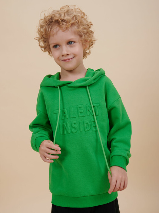 Изделие выполнено в однотонном цвете на выбор: бежевый, черный, зеленый. Худи для мальчика подростка оверсайз спереди декорировано выпуклым пресс-принтом: "Talent inside" - перевод "Талант внутри". Толстовка оверсайз рассчитана на возраст садика и школы. Понравится как малышам, так и школьникам и подросткам. Размерная линейка: 1 (86); 2 (92); 3 (98); 4 (104); 5 (110); 6 (116); 7 (122); 8 (128); 9 (134); 10 (140); 11 (146).