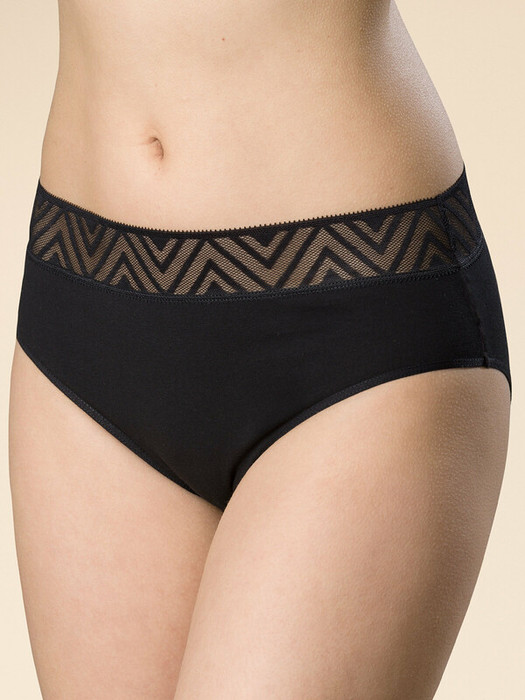 Женские трусы-слипы с высокой посадкой. Приятная на ощупь ткань с высоким содержанием хлопка и небольшим содержанием эластана – трусы сохраняют форму и не выцветают даже после частых стирок.  Мягкая широкая обработка по линии талии кружевным эластиком – не вызывает дискомфорта и не передавливает тело. Нежное геометричное кружево актуально в этом сезоне. Модель подчеркивает изящество фигуры и создаёт комфорт. Идеально подходят для повседневной носки, для сна и для романтических встреч.