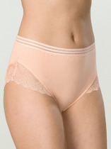 Женские трусы-слипы с высокой посадкой. Приятная на ощупь ткань с высоким содержанием хлопка и небольшим содержанием эластана – трусы сохраняют форму и не выцветают даже после частых стирок. Мягкая широкая обработка по линии талии кружевным эластиком – не вызывает дискомфорта и не передавливает тело. Нежное геометричное кружево актуально в этом сезоне. Модель подчеркивает изящество фигуры и создаёт комфорт. Идеально подходят для повседневной носки, для сна и для романтических встреч.