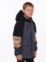 Укороченная ветровка с цельнокроеным рукавом для мальчиков. Стиль куртке придают разноцветные резные вставки - тренд сезона Весна 23. Модель свободного современного кроя, увеличенного объема и c цельнокроеным рукавом. Наличие в составе ткани мембраны делает куртку максимально комфортной при носке. РЕКОМЕНДУЕМЫЙ ТЕМПЕРАТУРНЫЙ РЕЖИМ не ниже +10°С. Водоотталкивающая пропитка (DWR) наносится на внешнюю поверхность ткани и задерживает грязь и влагу снаружи. Дополнительный слой на внутренней стороне ткани не позволяет ребенку промокнуть. Хлопковый трикотаж в капюшоне и по стану - хорошая воздухопроницаемость, ребенок не вспотеет, в рукавах подклад из полиэстера - для удобства надевания. Капюшон двухшовный - хорошо сидит на голове, неотстегивающийся. Регулировка объема капюшона, низа рукавов и куртки, а также внутренняя ветрозащитная планка и наружная на липе - дополнительное тепло.  Центральная застежка: тракторная молния. Не заедает! Тканевый стоппер защищает подбородок от зажима молнией. Фиксирующая строчка предо