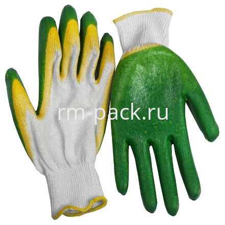 Трикотаж повышенной плотности из натурального первичного хлопка. Высокое содержание хлопка обеспечивает больший комфорт, полиэфир – износоустойчивость. Бесшовная конструкция: перчатки не натирают руки. Поддерживают хороший воздухообмен. Двойной облив обеспечивает качественный захват и длительный срок службы.