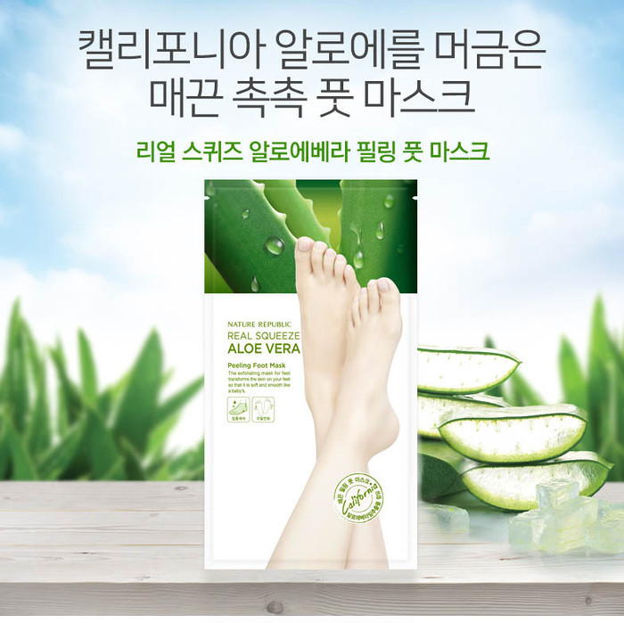 Совместные покупки Нижний Тагил Косметика и парфюмерия Уход за ногами — Пилинг-маска для ног с экстрактом Алое Вера NATURE REPUBLIC Real Squeeze Aloe Ve