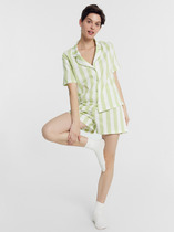 Удобный и практичный домашний костюм из легкого хлопкового трикотажа, состоящий из бриджей и халата на поясе