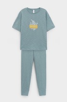 Пижама молодежная из трикотажного полотна «кулирка» в комбинации двух видов в единой цветовой гамме: гладкокрашенного и с набивным