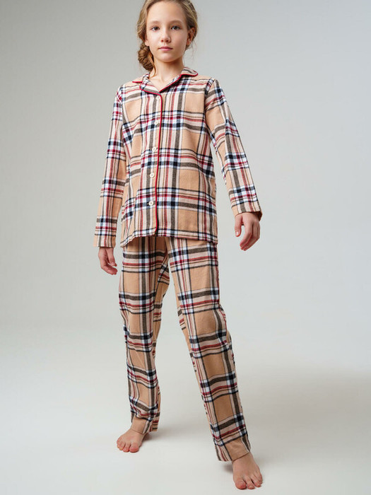 Классическая клетчатая пижама для девочки подростка от PlayToday — уют, тепло и стиль для комфортного сна и отдыха.