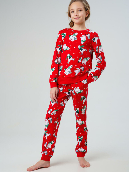 Классическая красная трикотажная пижама для девочки подростка от PlayToday — уют, комфорт и яркое настроение для сна и дома.