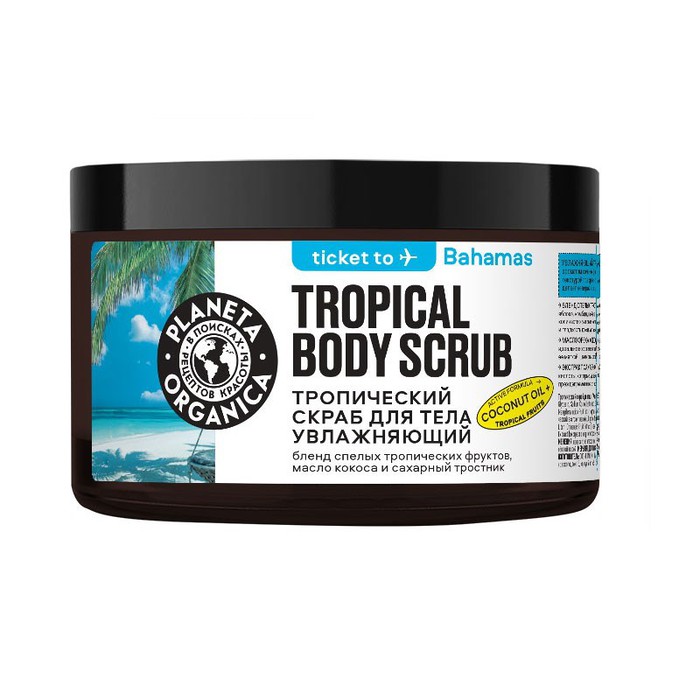 УВЛАЖНЯЮЩИЙ ТРОПИЧЕСКИЙ СКРАБ ДЛЯ ТЕЛА с ярким ароматом сочных тропических фруктов и роскошной кремовой текстурой прекрасно отшелушивает кожу, увлажняет её и делает невероятно гладкой.