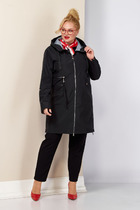 Горловина оформлена стояче-отложным воротником на отрезной стойке и бортами с отложными лацканами.