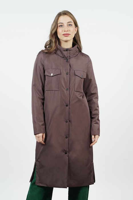 Плащ утепленный рубашечного покроя, прямого силуэта со спущенная линия плеча. На груди накладные карманы и прорезные карманы в боковом шве. По боковым швам разрезы, застежка на видовые брендированные кнопки, в дополнение идет завязывающийся пояс. Длина по спинке - ок.107,длина рукава - ок. 64см. Рост 170 см. Р-ры 42-52 Состав: полиэстер 100%, утеплитель: Air Twin Light 60 г/m 2 Цвет:кофе Цвет одежды может незначительно отличаться от оригинала.