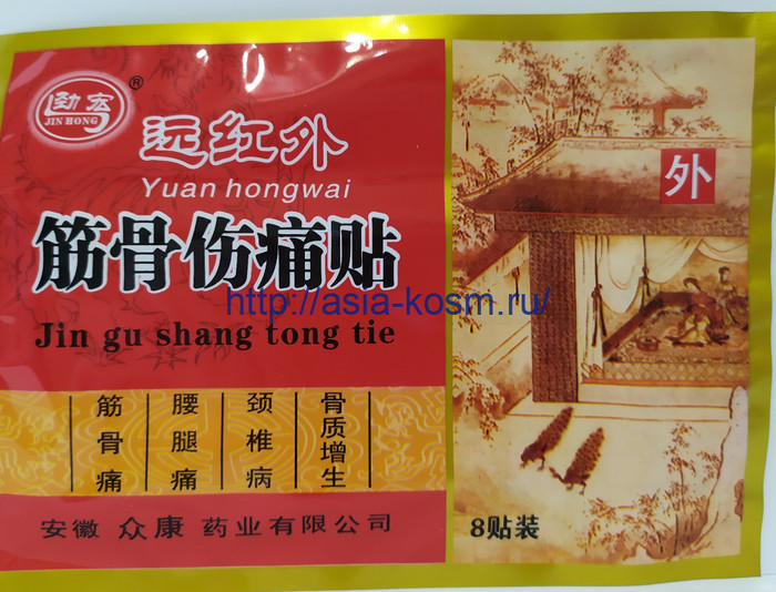 Пластырь от боли в спине, шее и суставах "JIN GU SHANG TONG TIE" с мускусом.