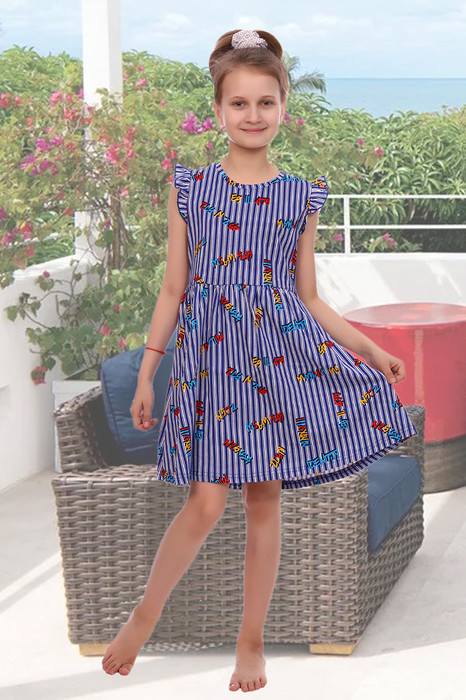Практичное платье полуприлегающего силуэта отрезное по талии из хлопкового полотна. Юбка густо собрана на сборку, а пройма оформлена рукавом-крылышком, что придает образу особое очарование. Круглый вырез горловины обработан притачной бейкой. Яркая веселая расцветка придется по вкусу маленьким модницам. Отличный вариант для повседневной носки, как дома, так и на выход.