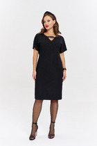 Стильной женское платье, верх выполнен из высококачественного трикотажа с добавлением вискозы, низ платья, рукава и отделка по горловине из высококачественной эко-кожи на хлопковой основе. Горловина платья округлая, рукав платья 3/4, спущенный. Юбка платья по переду со шлицей. Модель стильная и практичная, невероятно стройнит, прекрасно подойдет для ежедневной носки и торжественного мероприятия, вы будете выглядеть современно и неотразимо.