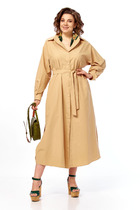 Платье повседневного назначения отличается оригинальным комбинированием тканей и асимметричным членением деталей. Модель свободного силуэта, длиной ниже колена, что обеспечивает комфорт и практичность в носке. Верхняя часть изделия выполнена из ткани в горизонтальную полоску, которая визуально придаёт образу динамичность и лёгкость. Перед асимметричного кроя, с конструктивным членением. Верхняя часть выполнена из ткани в горизонтальную полоску. Линия соединения деталей проходит по диагонали. На правой стороне переда расположен накладной карман прямоугольной формы. Нижняя часть платья изготовлена из однотонной ткани, создающей гармоничный контраст с верхом.