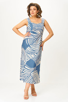 Платье А-образного силуэта с расширением книзу, с цельнокроеной стойкой, с втачными, одношовными, длинными рукавами книзу расширенные. Горловина, низ изделия и рукава обработаны узкой краеобмёточной строчкой «флешь».