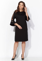 Платье прямого, свободного силуэта, отрезное по линии талии с кулисой, со спущенной линией плеча и патами фиксируемые на петлю и пуговицу посередине шва. Степень прилегания по линии талии и низ фиксируется окантовочный шнуром.